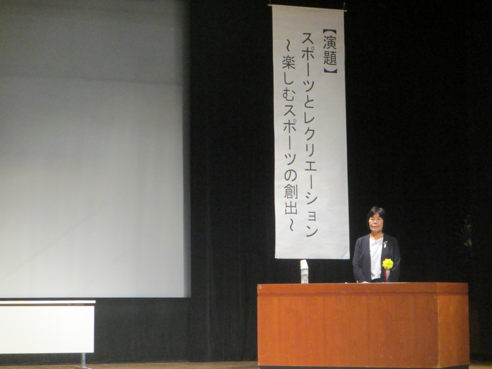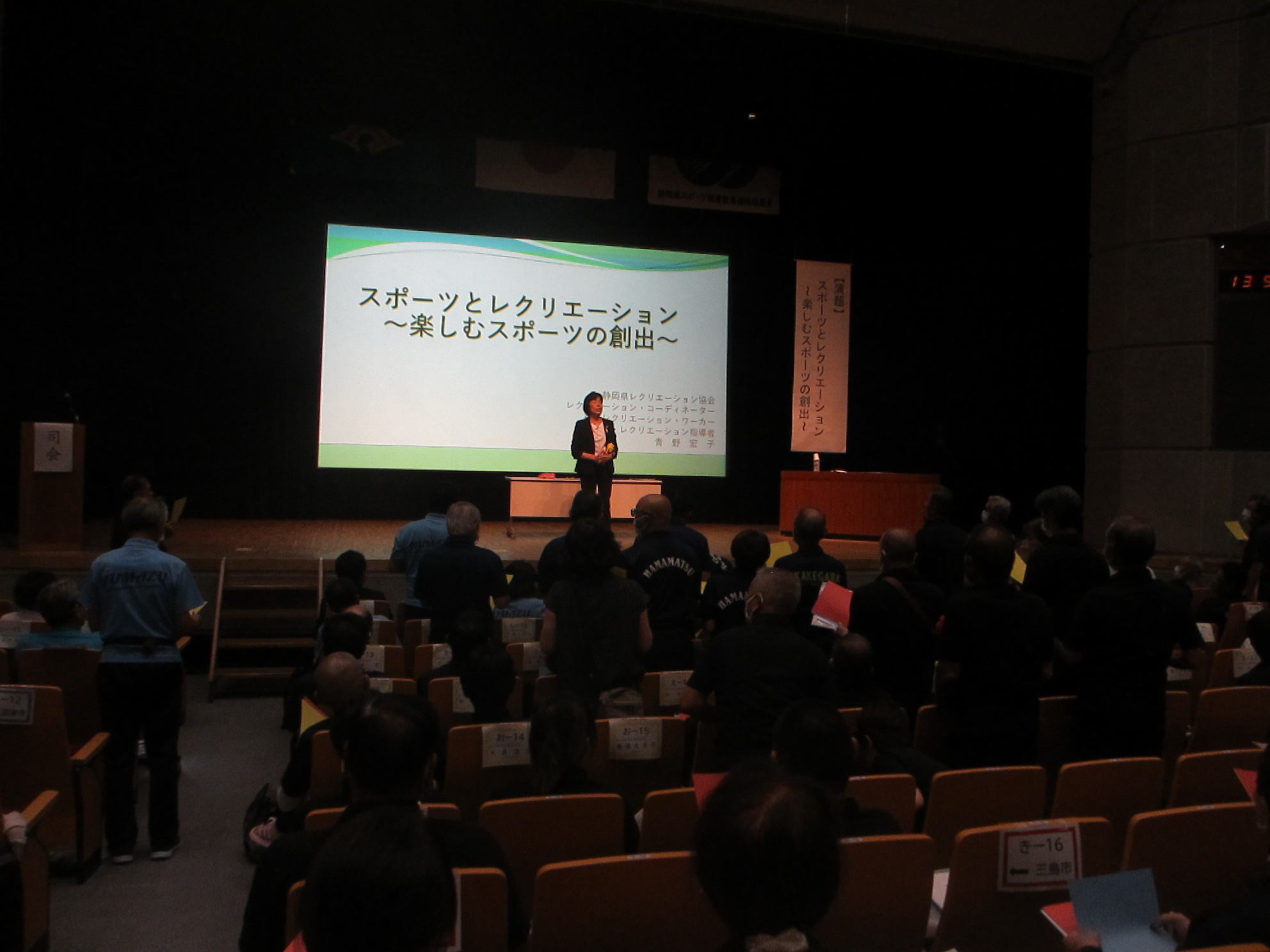 講演は、県レクリエーション協会副理事長、の 青野宏子さん を講師に迎え、