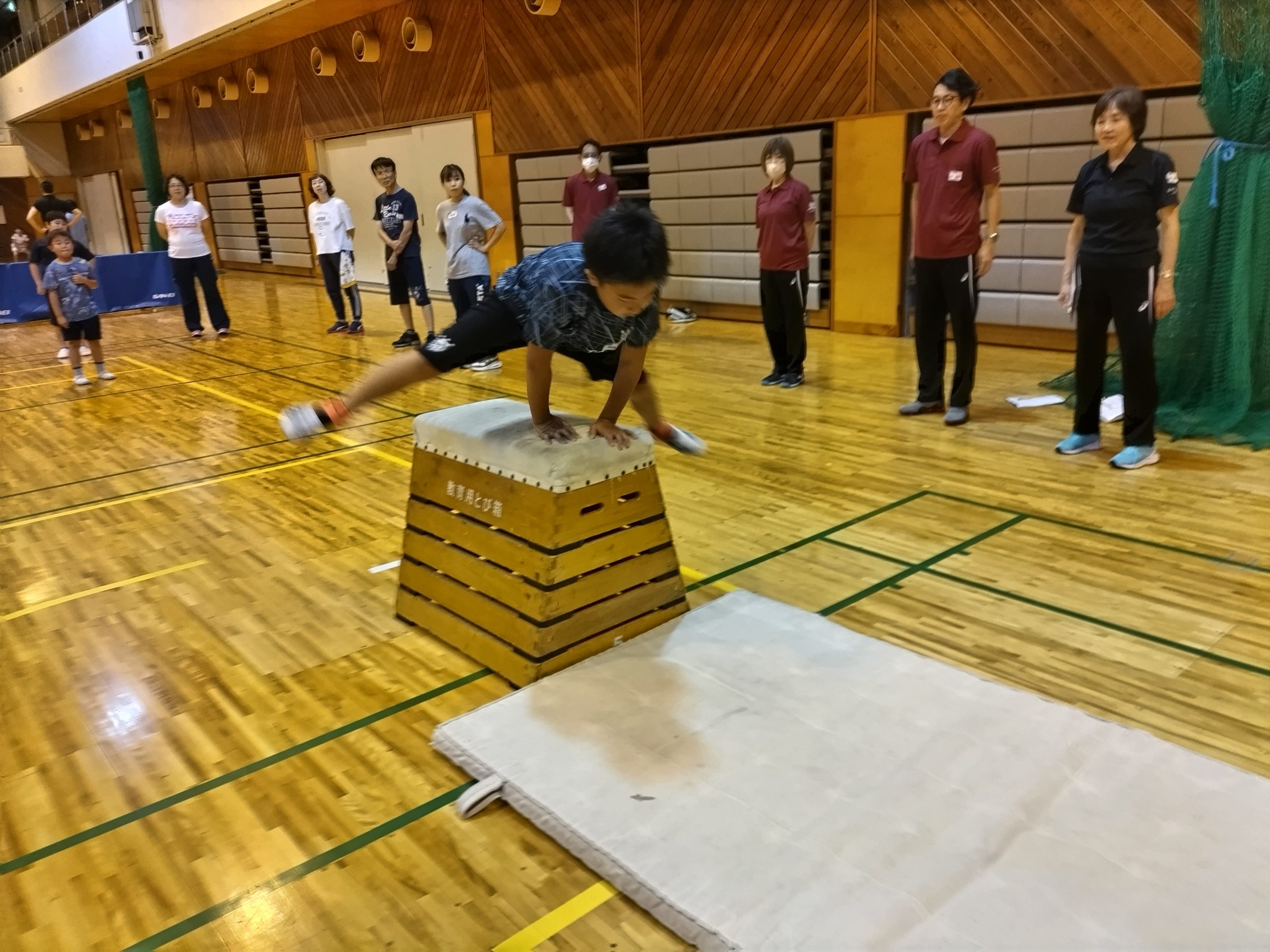 他のところを見ていた時に、跳び箱を飛んでそのままマットにダイブしてしまいました。