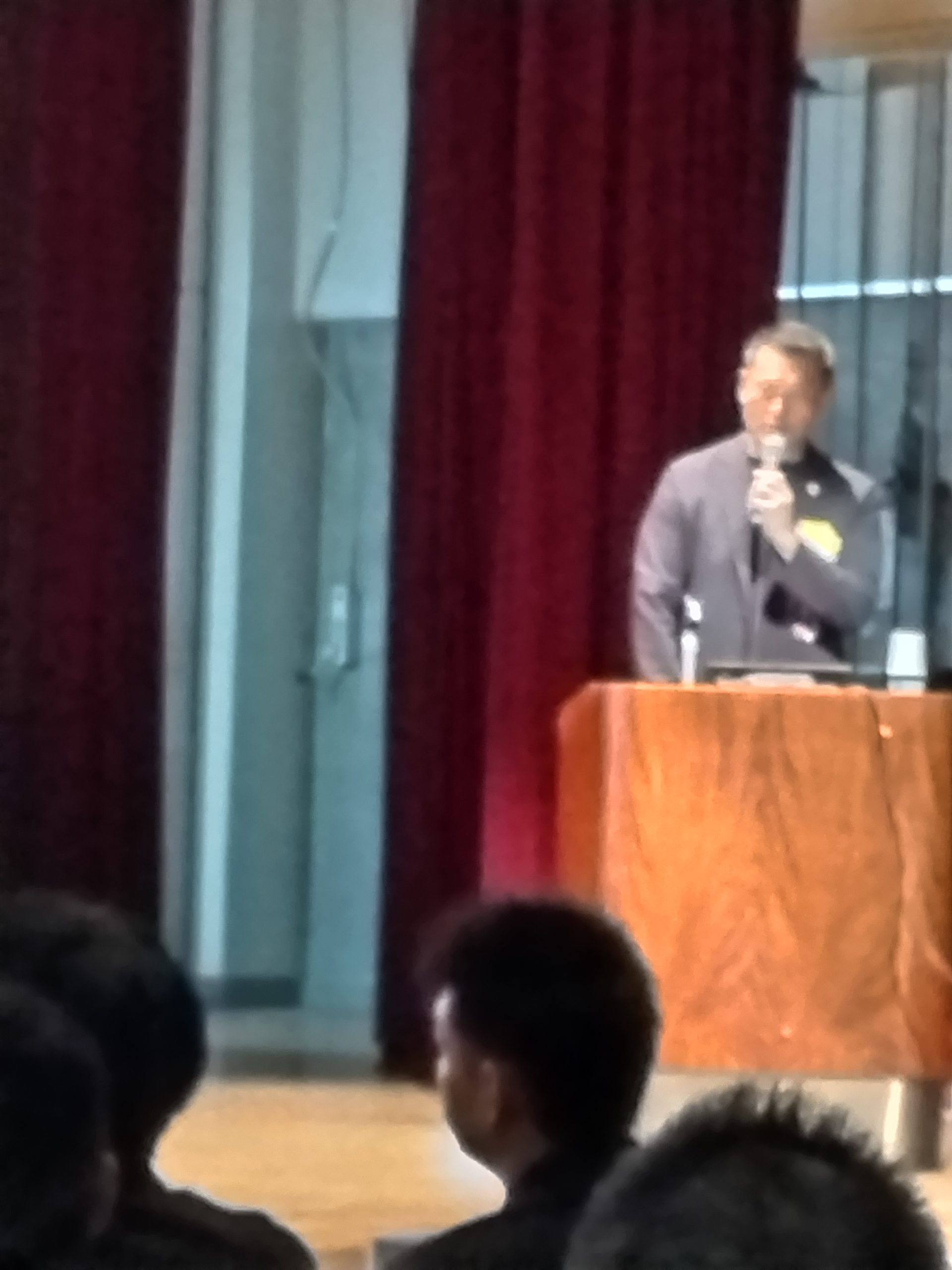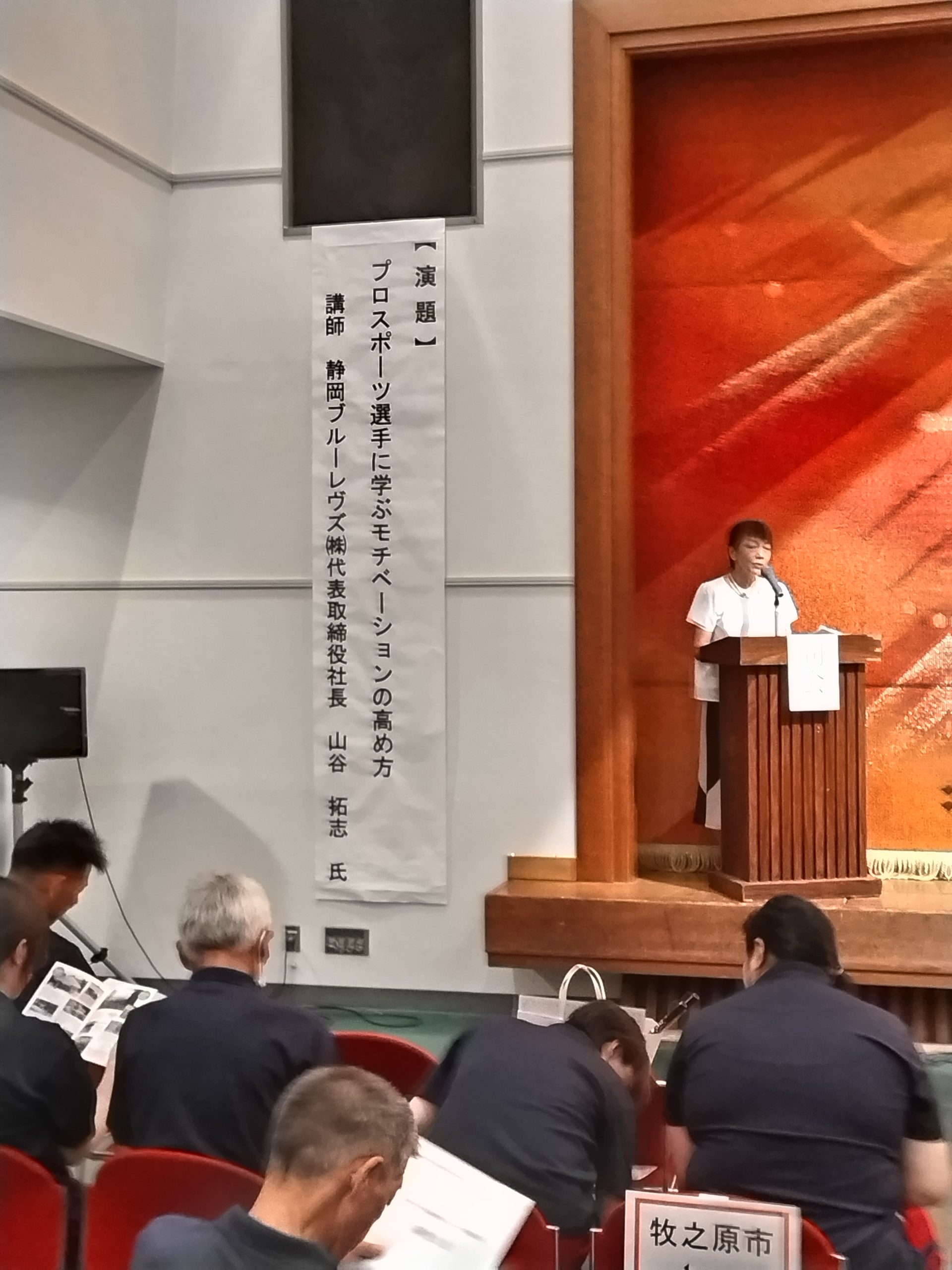 講演は、プロラグビー静岡ブルーレヴスの山谷社長を講師に迎え、